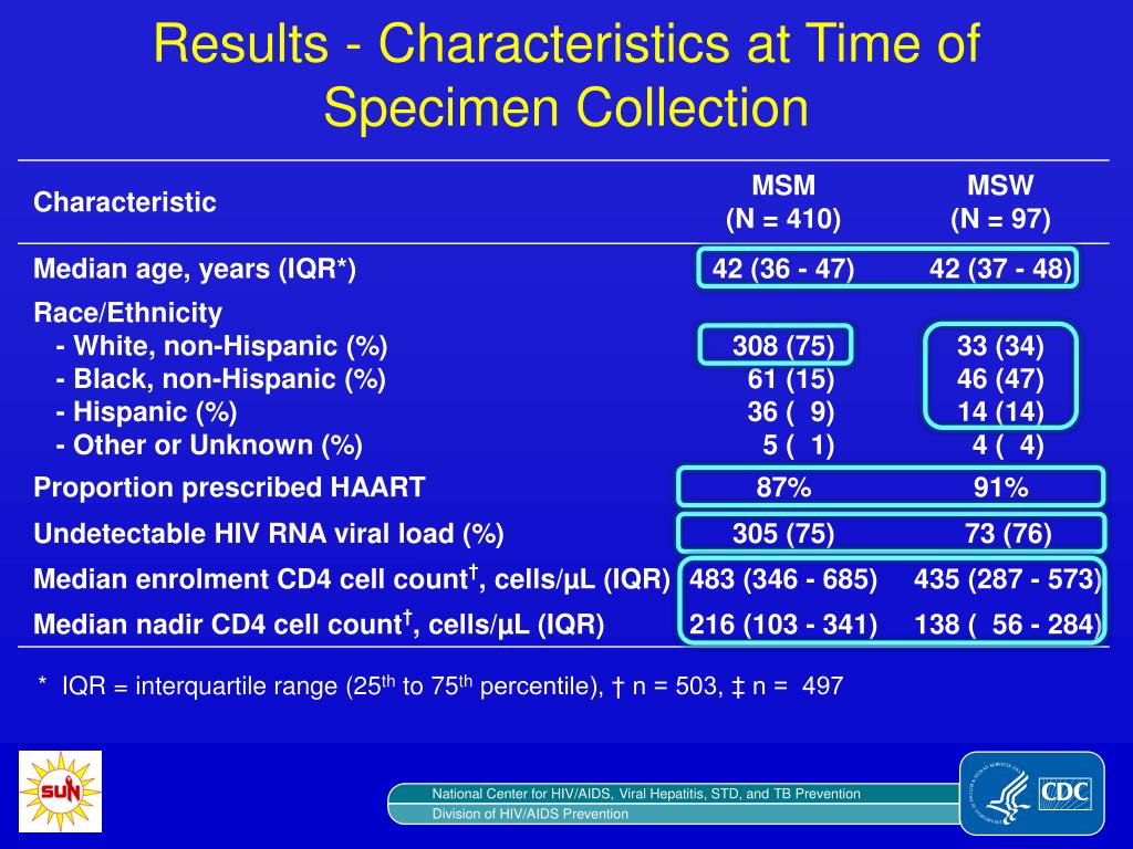 Results - Characteristics at Time of Specimen Collection * IQR = interquartile range (25th to 75th percentile), † n = 503, ‡ n = 497