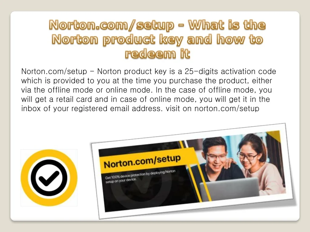 Norton.com/setup - Norton product key is a 25-digits activation code which is provided to you at the time you purchase the product, either via the offline mode or online mode. In the case of offline mode, you will get a retail card and in case of online mode, you will get it in the inbox of your registered email address. visit on norton.com/setup