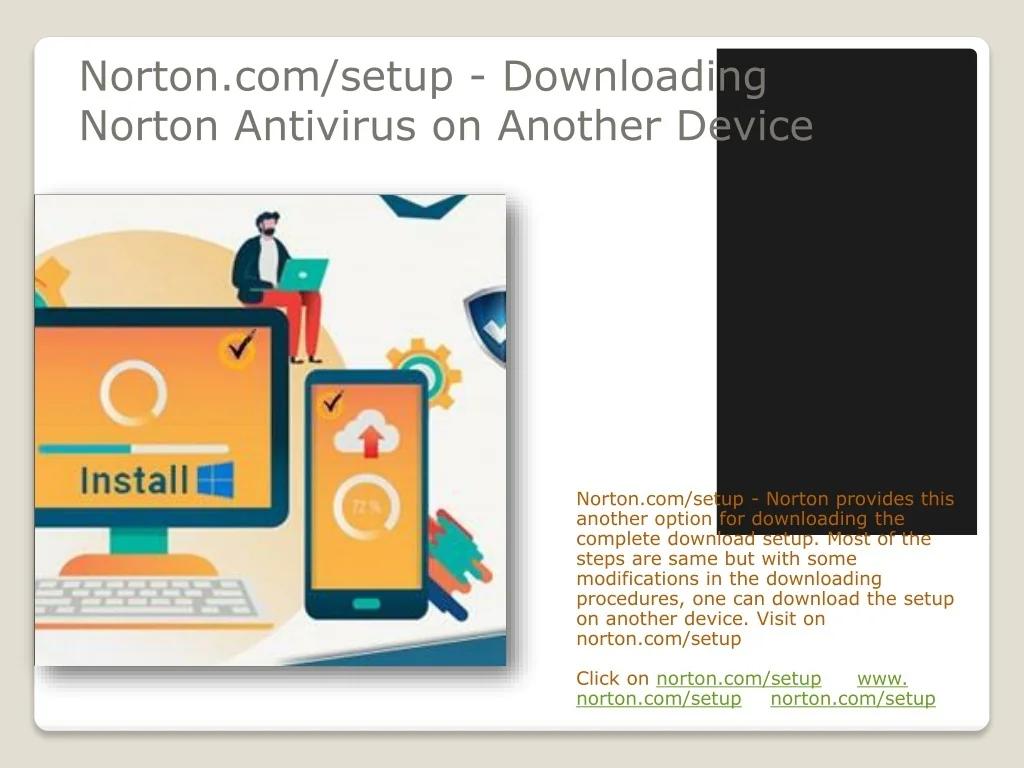 Norton.com/setup - Downloading Norton Antivirus on Another Device Norton.com/setup - Norton provides this another option for downloading the complete download setup. Most of the steps are same but with some modifications in the downloading procedures, one can download the setup on another device. Visit on norton.com/setup Click on norton.com/setup | www. norton.com/setup | norton.com/setup