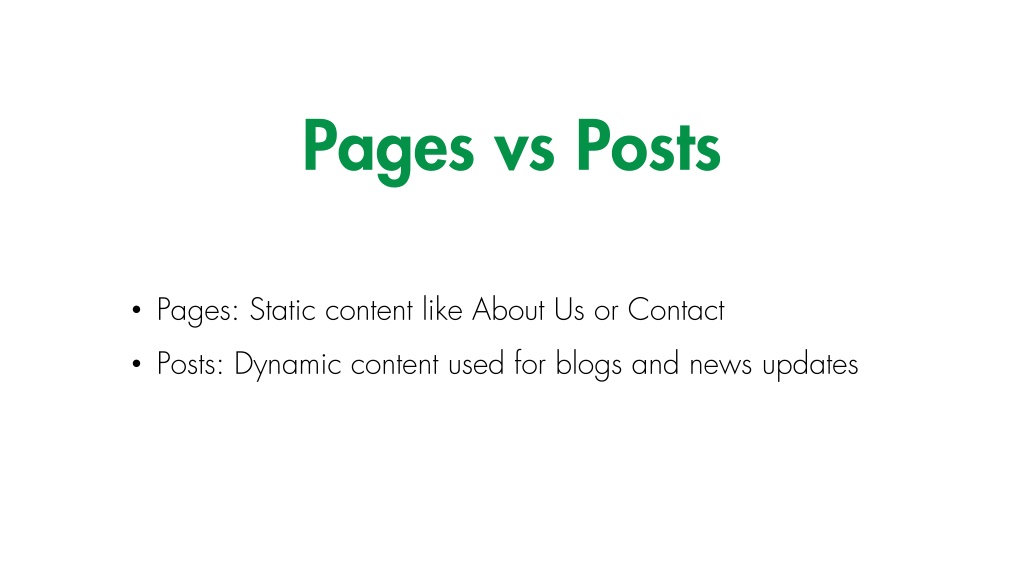 Pages vs Posts • Pages: Static content like About Us or Contact • Posts: Dynamic content used for blogs and news updates Potential Opportunities With the acceleration of digital transformation, we see huge potential opportunities in industries such as healthcare and finance.