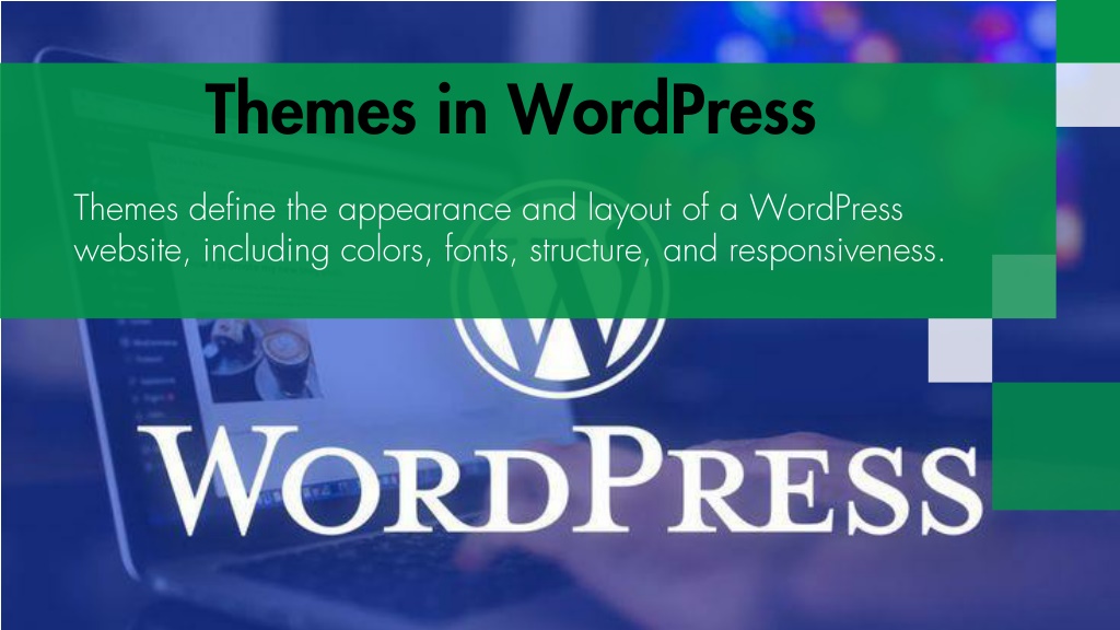 Themes in WordPress Themes define the appearance and layout of a WordPress website, including colors, fonts, structure, and responsiveness.