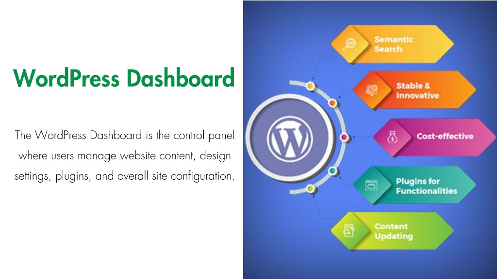 WordPress Dashboard The WordPress Dashboard is the control panel where users manage website content, design settings, plugins, and overall site configuration.