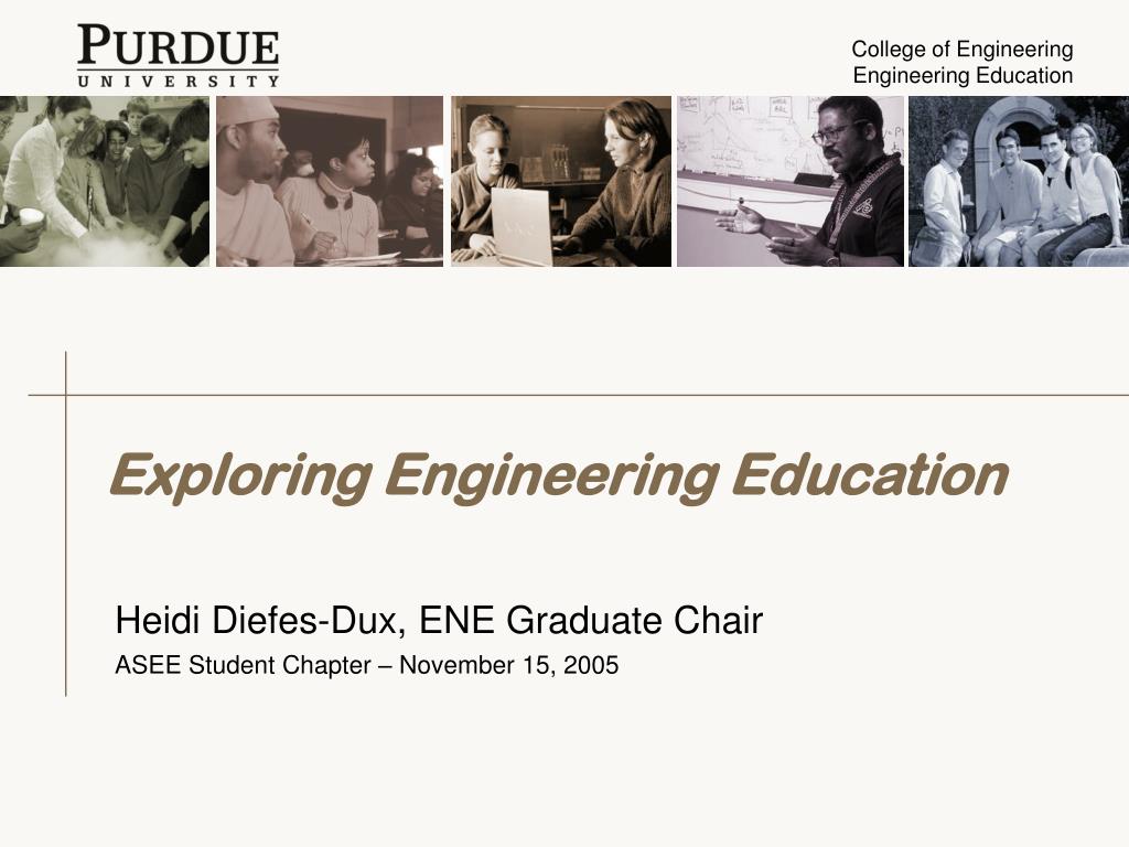 Exploring Engineering Education Heidi Diefes-Dux, ENE Graduate Chair ASEE Student Chapter – November 15, 2005