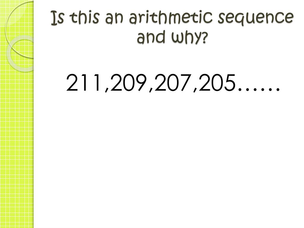 Is this an arithmetic sequence and why? 211,209,207,205……