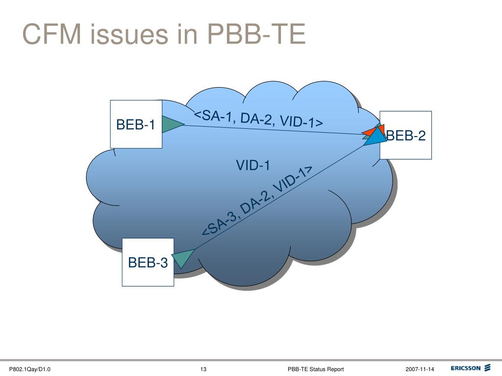 CFM issues in PBB-TE BEB-1 <SA-1, DA-2, VID-1> BEB-2 VID-1 <SA-3, DA-2, VID-1> BEB-3