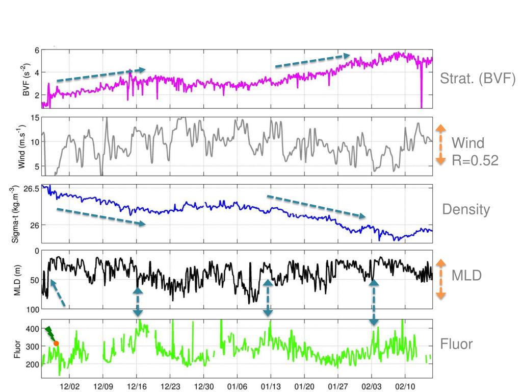 Strat. (BVF) Wind R=0.52 Density MLD Fluor
