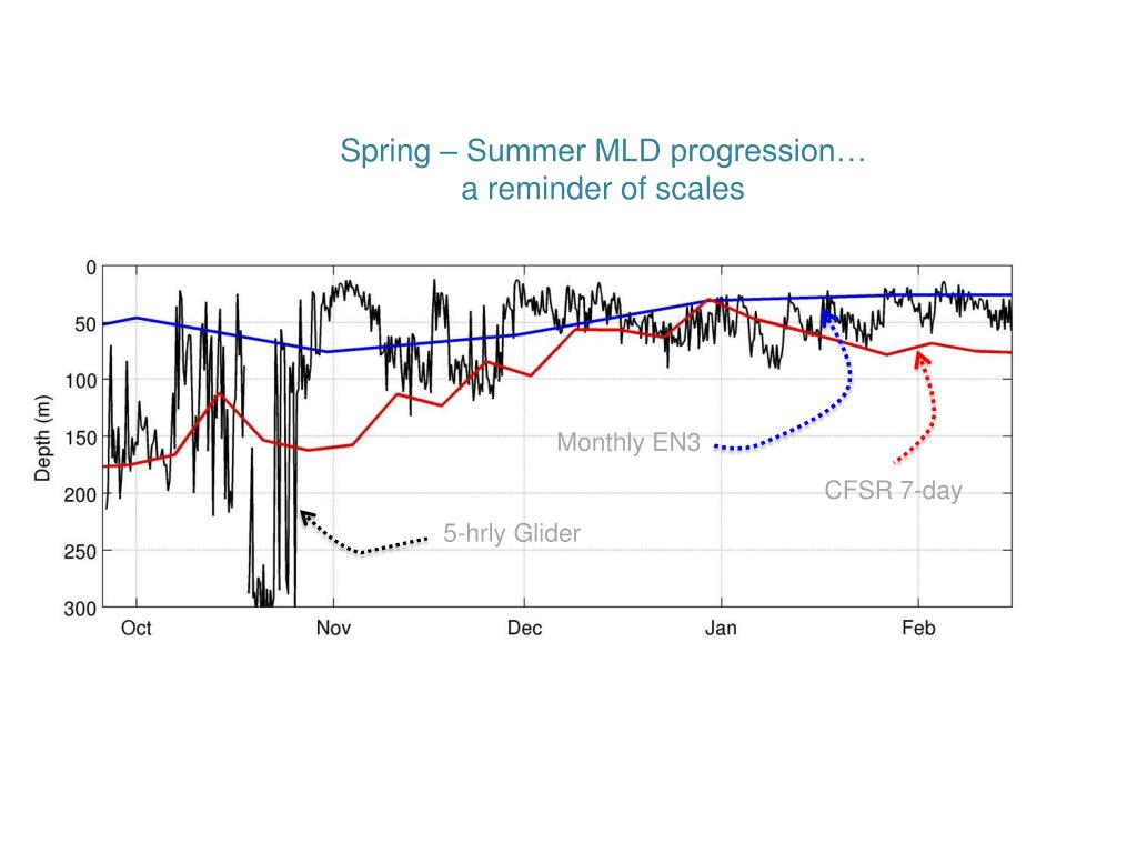 Spring – Summer MLD progression… a reminder of scales Monthly EN3 CFSR 7-day 5-hrly Glider