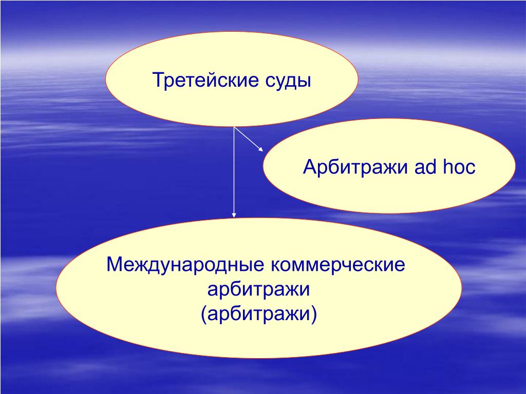 Третейские суды Арбитражи ad hoc Международные коммерческие арбитражи (арбитражи)