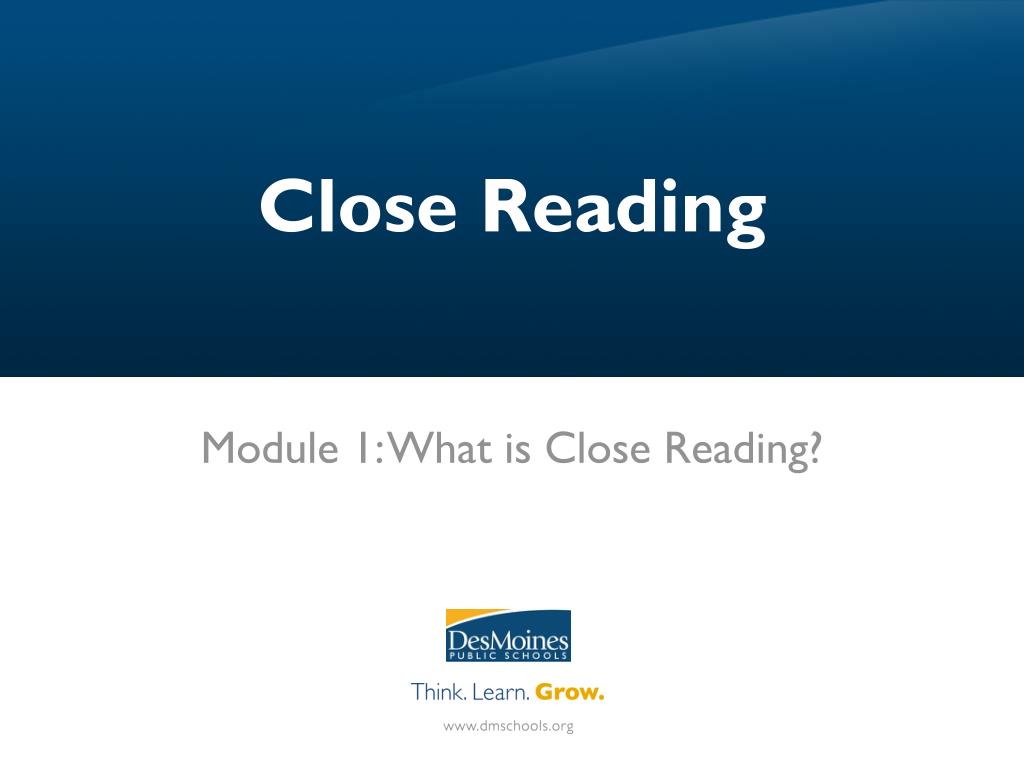 What’s Our Purpose for Module 1? • What will Implementation of Close Reading look like in DMPS? • How will we get there? • Why Close Reading? • What is Close Reading? • What are the first three practices of Close Reading?