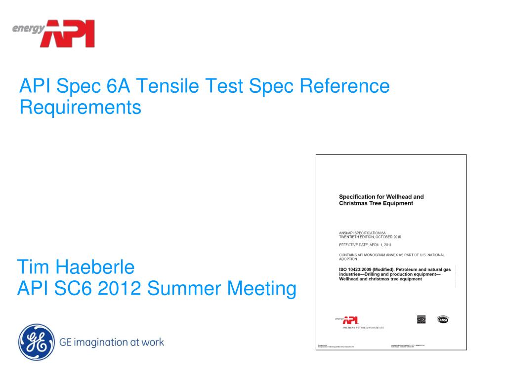 API Spec 6A Tensile Test Spec Reference Requirements Tim Haeberle API SC6 2012 Summer Meeting