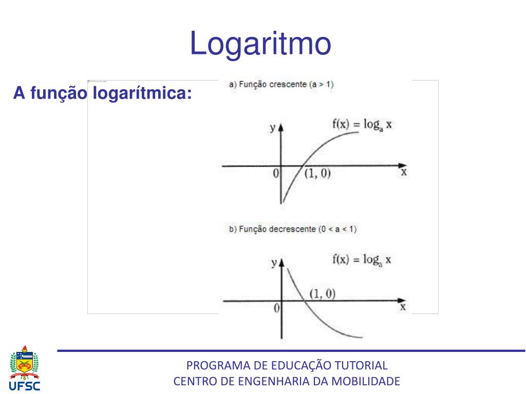 Logaritmo Definição: b = Antilogaritmo ou logaritmando a = base c = logaritmo Condição de existência: ,