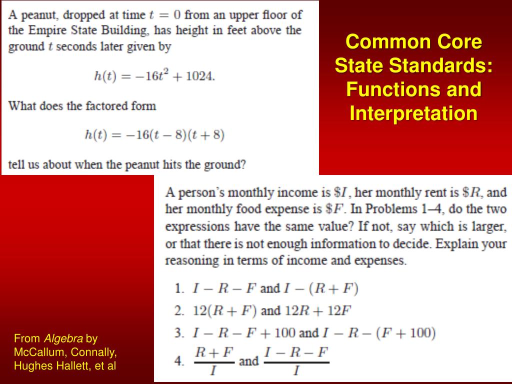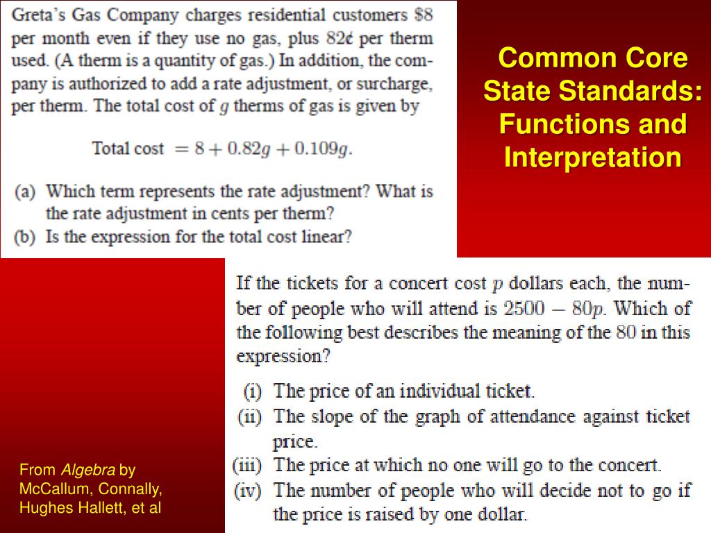 Common Core State Standards:Functions and Interpretation From Algebra by McCallum, Connally, Hughes Hallett, et al