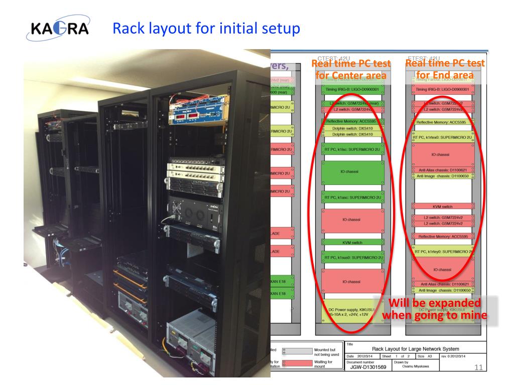 Rack layout for initial setup Real time PC test for End area Real time PC test for Center area Network for Kamiokabuiding Network for front-room in mine DAQ servers, storages Will be expanded when going to mine ICALEPCS 2013 at San Francisco, Osamu Miyakawa