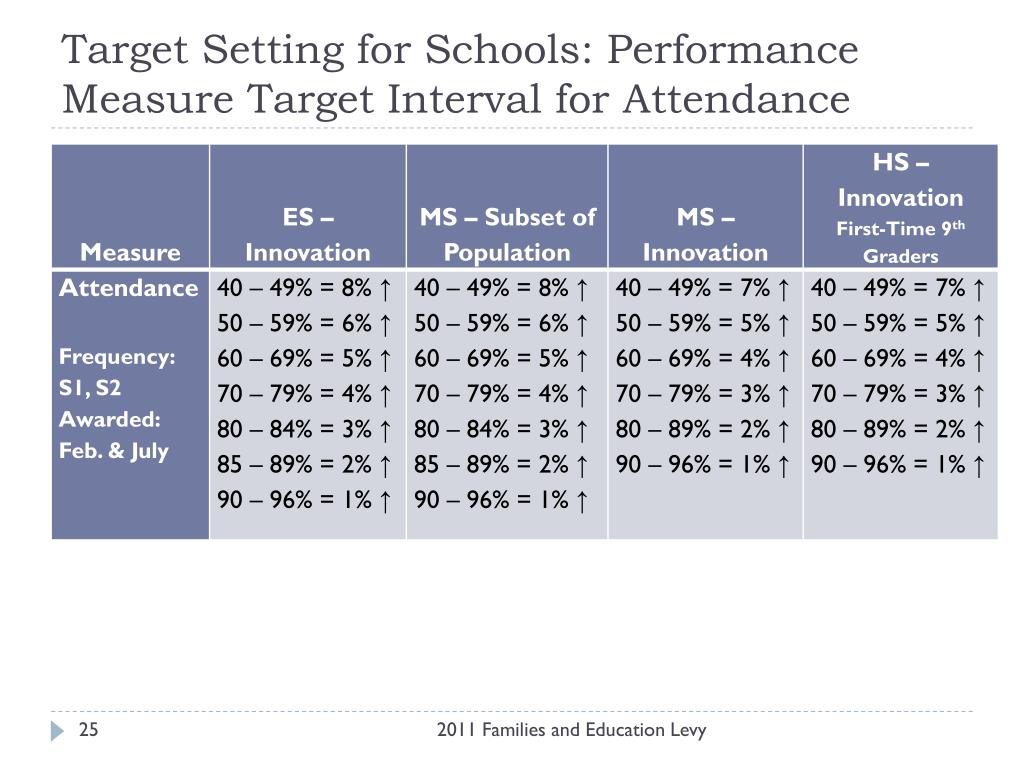 Target Setting for Schools: Performance Measure Target Interval for Attendance 2011 Families and Education Levy