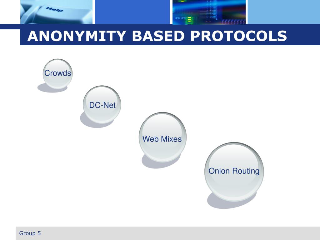 Crowds DC-Net Onion Routing Web Mixes ANONYMITY BASED PROTOCOLS