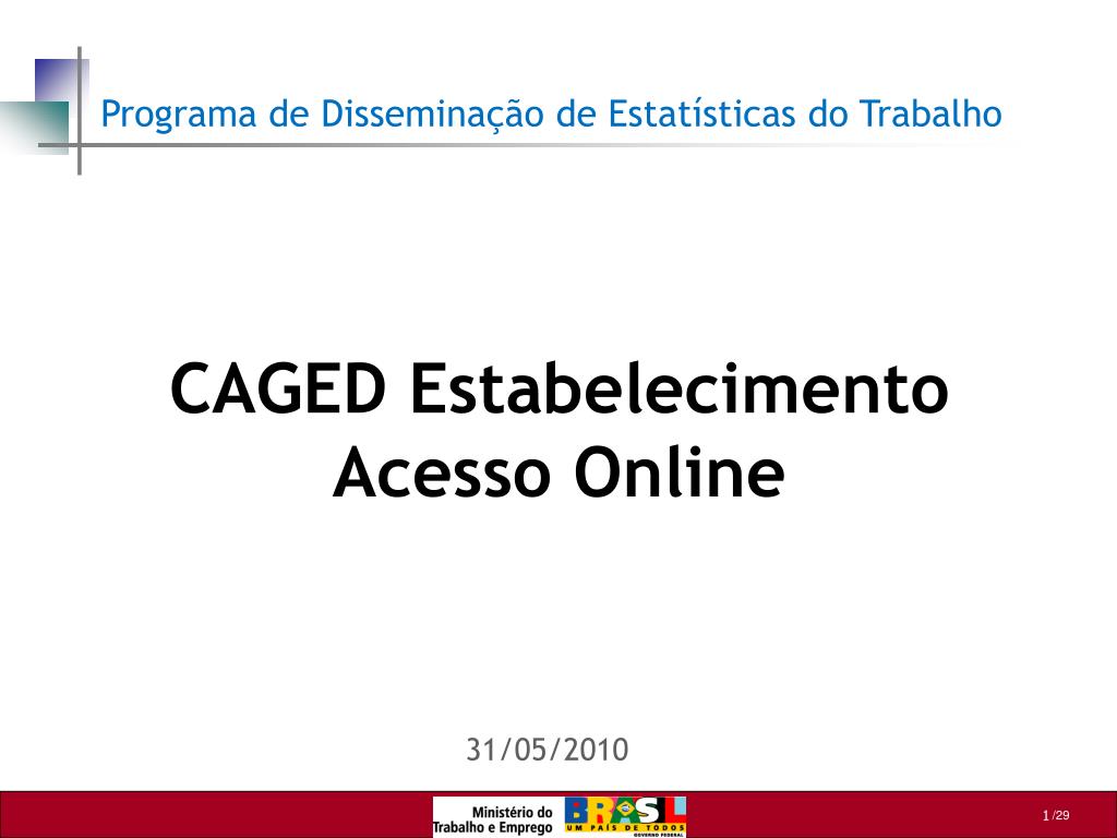 Programa de Disseminação de Estatísticas do Trabalho CAGED Estabelecimento Acesso Online 31/05/2010