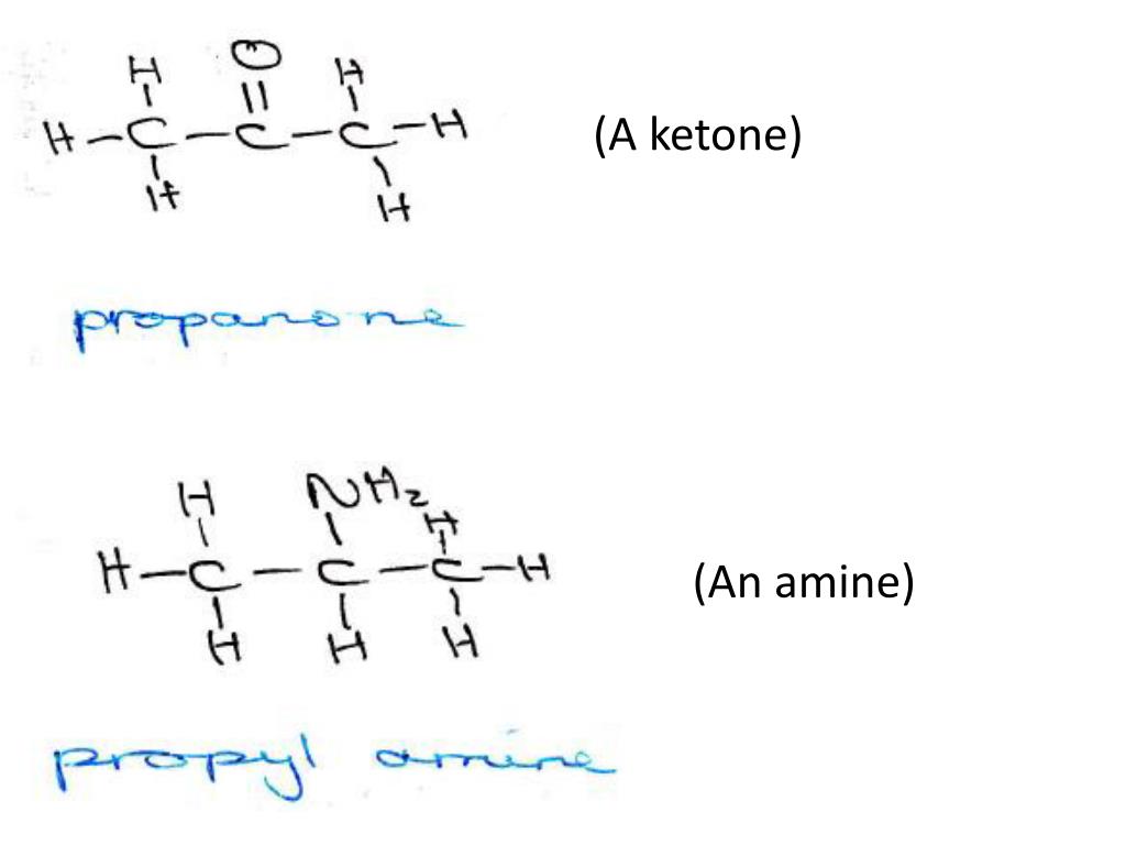Propene (An alkene). Propanal (An aldehyde). (an alkene). (An ester). (a carboxylic acid). (A halogenoalkane ). (An aldehyde). (An amine). (A halogenoalkane ). (A carboxylic acid). (A ketone). (An amine). (An ester). (an alkene). (An ester). (A Halogenoalkane ).