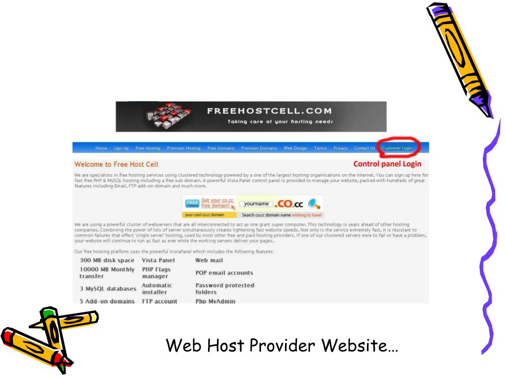 Now you have gone through the basics of website, blog, hosting and domains. • Let us start with setting up your web hosting account. • A commercial hosting and a domain name is always required for a good website. • There are many free web hosts around and we shall use www.FreeHostCell.com