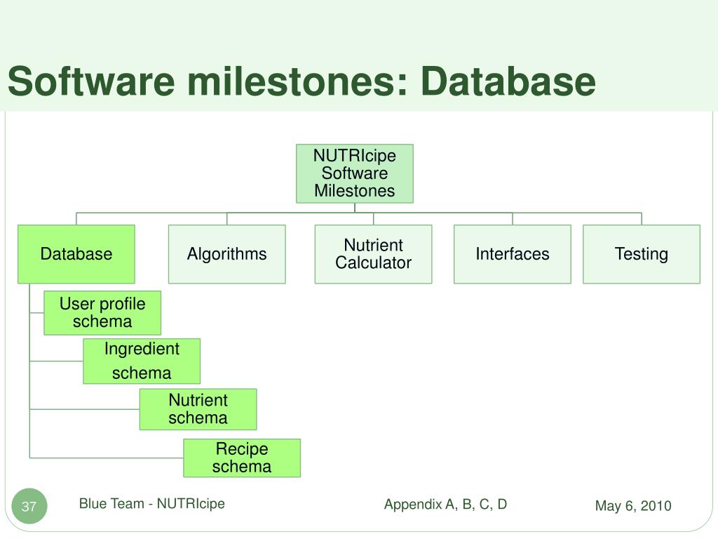 Software milestones: Database Blue Team - NUTRIcipe Appendix A, B, C, D