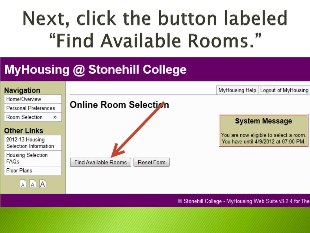 Housing Lottery. A Step-By-Step Guide for Room/Suite Selection Residence Life, Stonehill College. First, log into myHill and click on MY Housing. Next, click the button labeled “MyHousing.”. Review Your Activation Times in MyHousing.