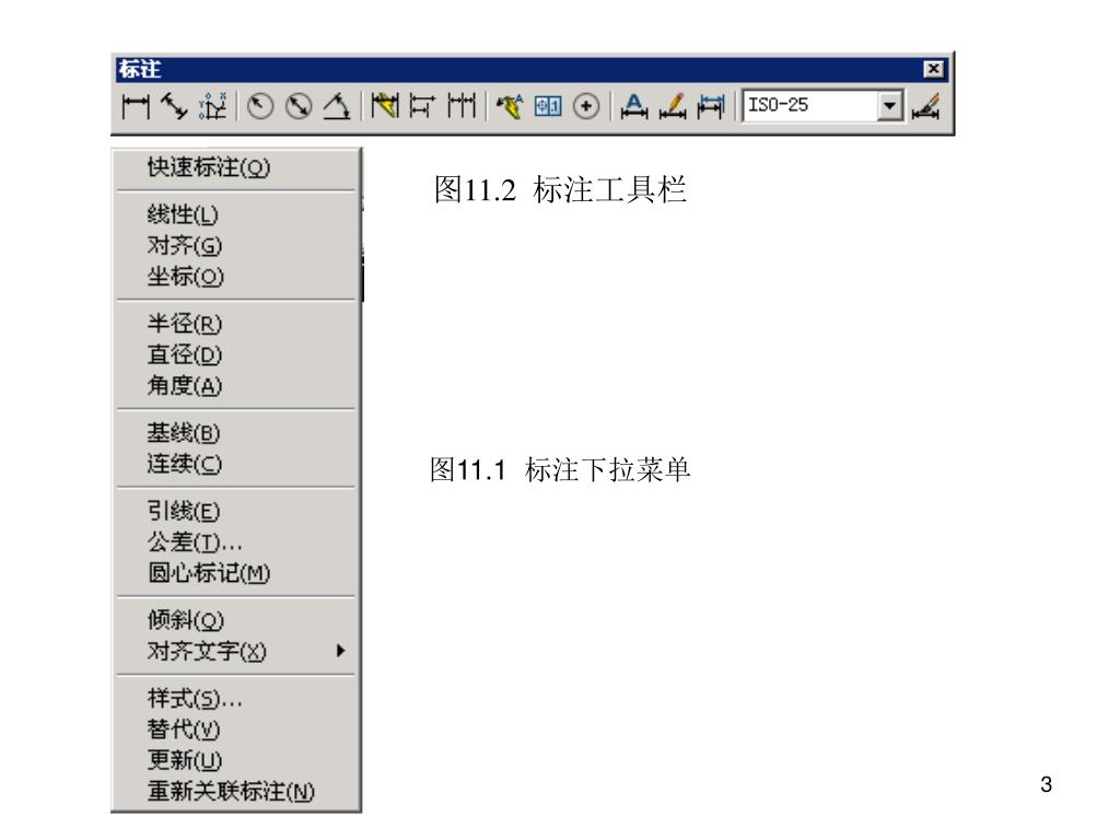 图11.2 标注工具栏 图11.1 标注下拉菜单