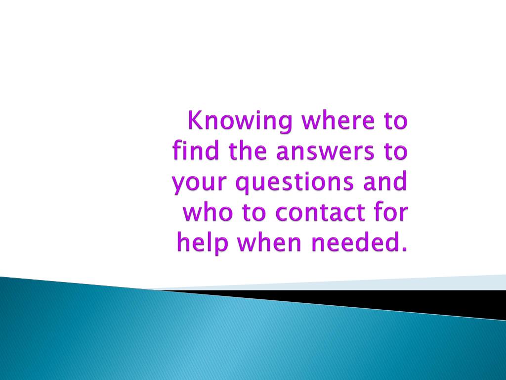 Knowing where tofind the answers toyour questions andwho to contact forhelp when needed.