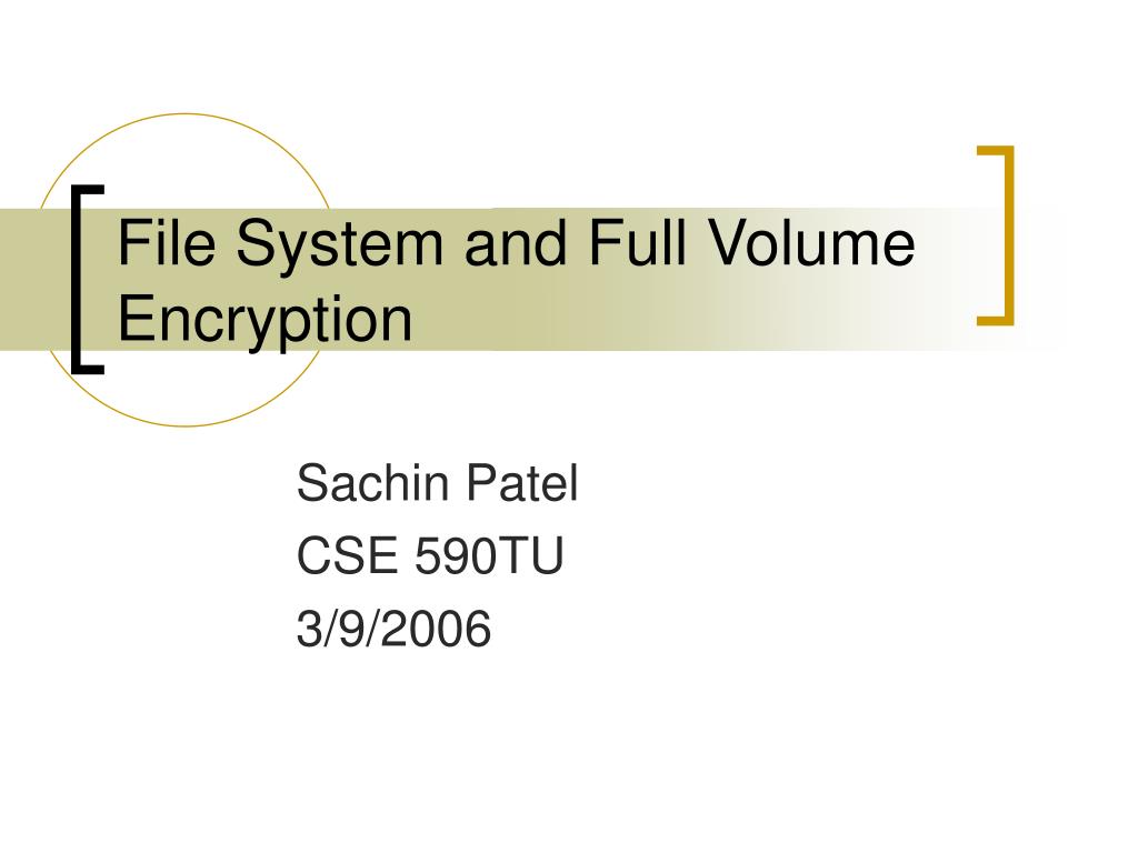 File System and Full Volume Encryption Sachin Patel CSE 590TU 3/9/2006