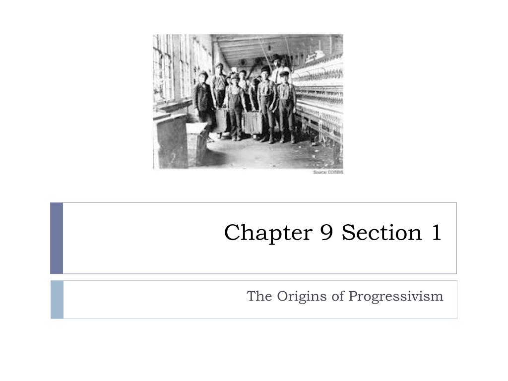 Chapter 9 Section 1. The Origins of Progressivism . Growth of Cities. Three negative consequences of the growth of America’s cities: Unemployment. Unsafe working conditions. Political Corruption. Help.