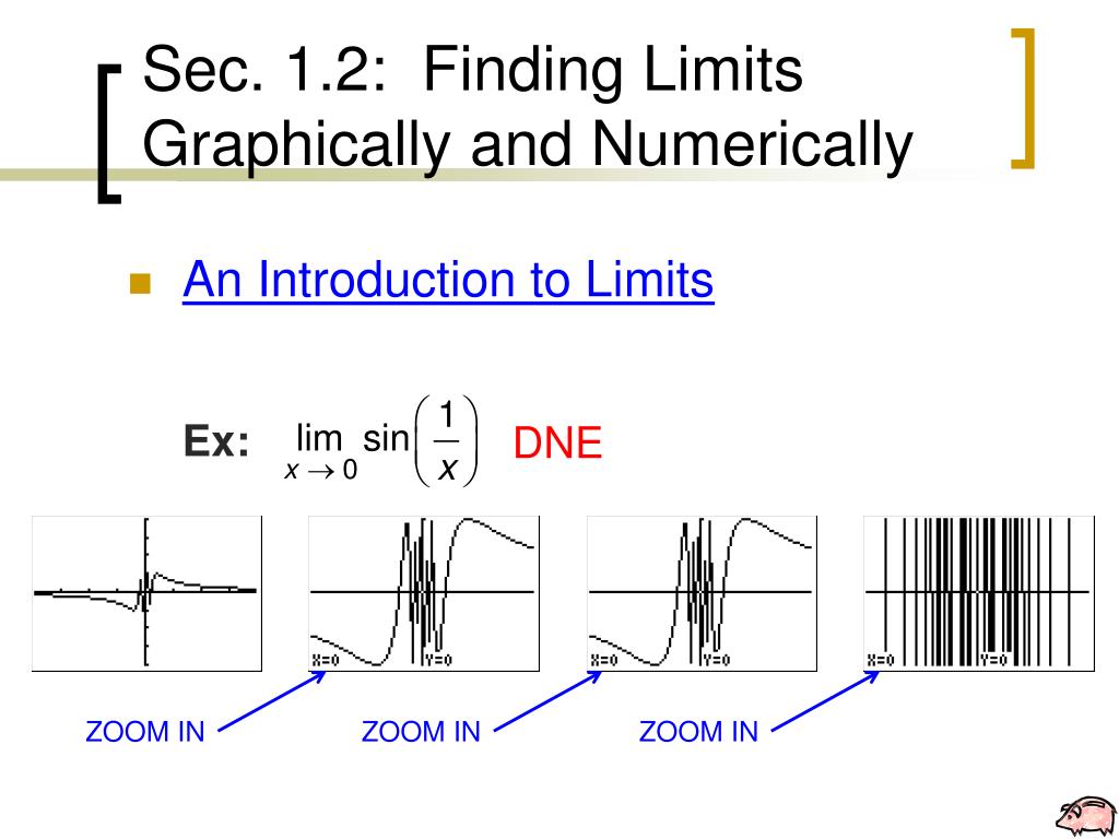 Sec. 1.2: Finding Limits Graphically and Numerically • An Introduction to Limits Ex: DNE ZOOM IN ZOOM IN ZOOM IN