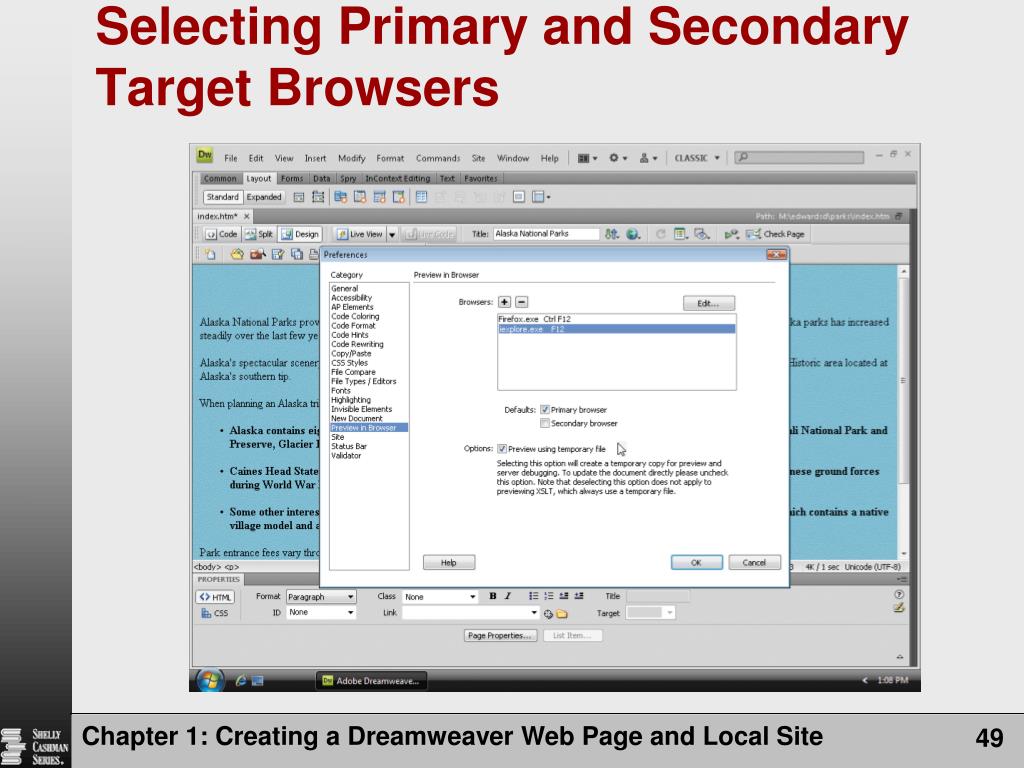 Selecting Primary and Secondary Target Browsers Chapter 1: Creating a Dreamweaver Web Page and Local Site