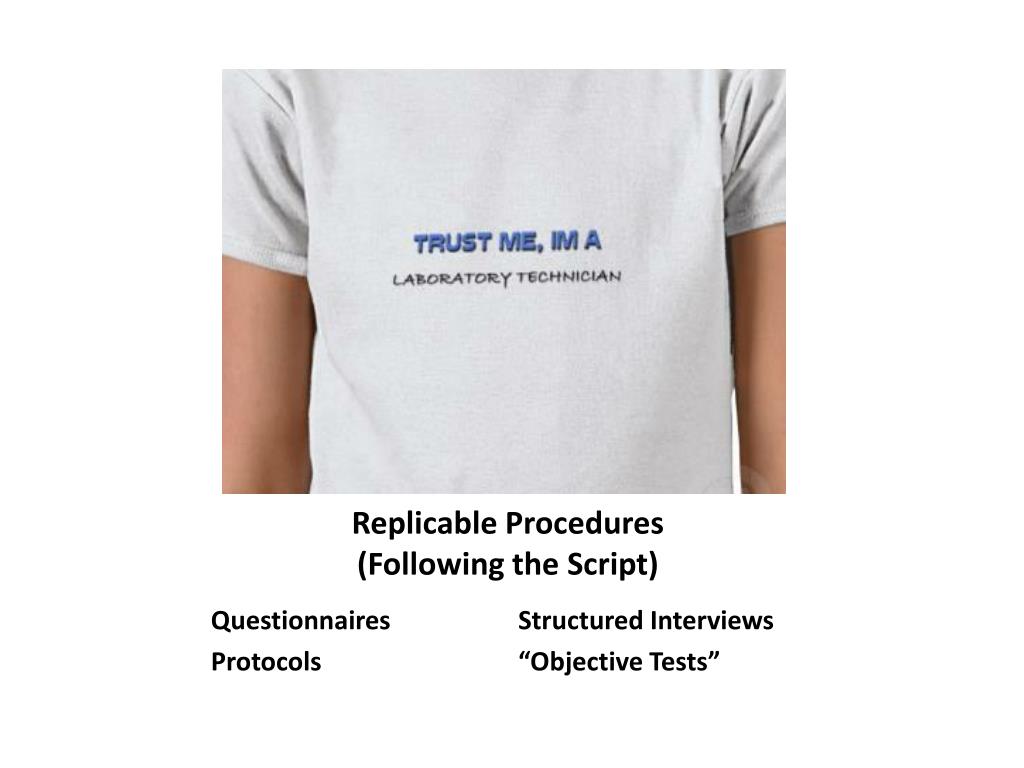 Replicable Procedures (Following the Script) Questionnaires Structured Interviews Protocols “Objective Tests”