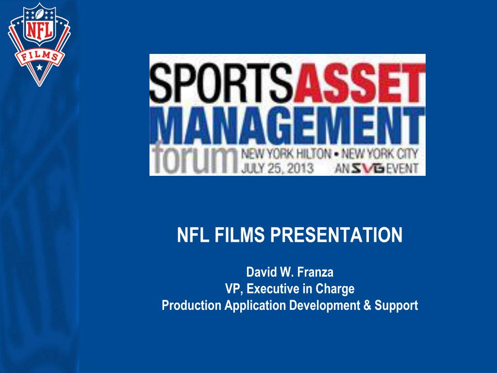 NFL FILMS PRESENTATION David W. Franza VP, Executive in Charge Production Application Development & Support. Agenda. Introduction & Some History (Ancient) The Vision and Need for Digital MAM at NFL Films Gaining Consensus and Funding - The Sell Job