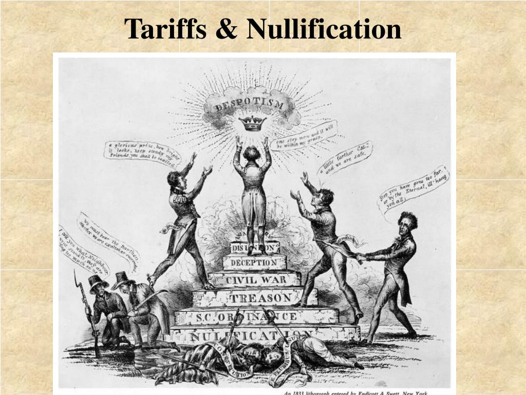 Tariffs & Nullification – Jackson’s Views Whereas the said ordinance prescribes to the people of South Carolina a course of conduct in direct violation of their duty as citizens of the United States, contrary to the laws of their country, subversive of its Constitution, and having for its object the destruction of the Union… I, Andrew Jackson, President of the United States, have thought proper to issue this my proclamation… If this doctrine had been established at an earlier day, the Union would have been dissolved in its infancy.… I consider, then, the power to annul a law of the United States, assumed by one State, incompatible with the existence of the Union, contradicted expressly by the letter of the Constitution, unauthorized by its spirit, inconsistent with every principle on which it was founded, and destructive of the great object for which it was formed….