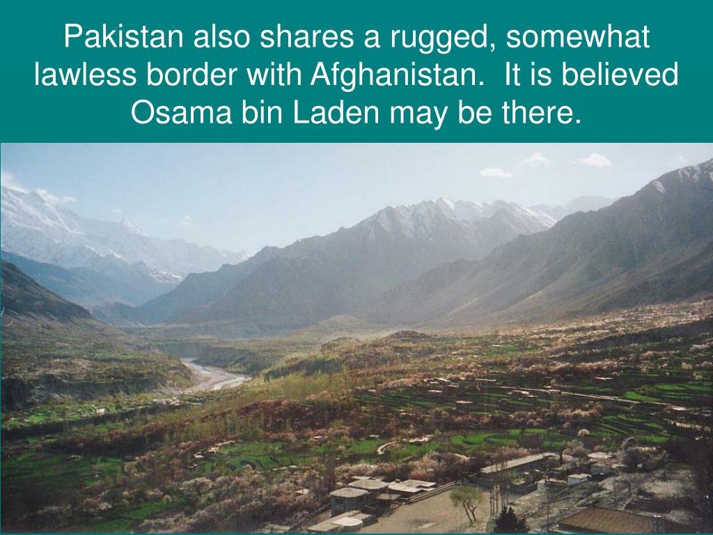 Pakistan also shares a rugged, somewhat lawless border with Afghanistan. It is believed Osama bin Laden may be there.