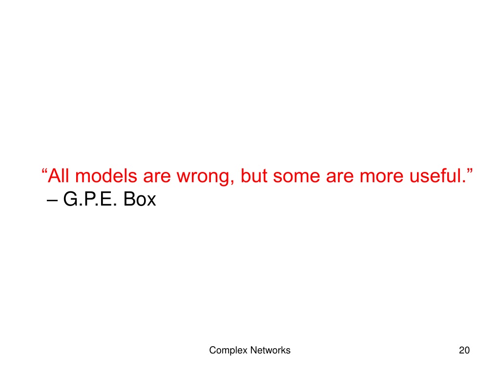 “All models are wrong, but some are more useful.” – G.P.E. Box Complex Networks