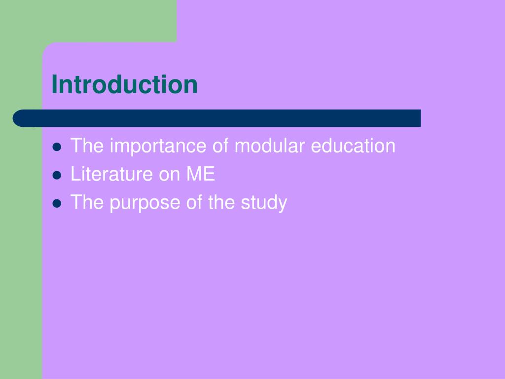 Introduction • The importance of modular education • Literature on ME • The purpose of the study